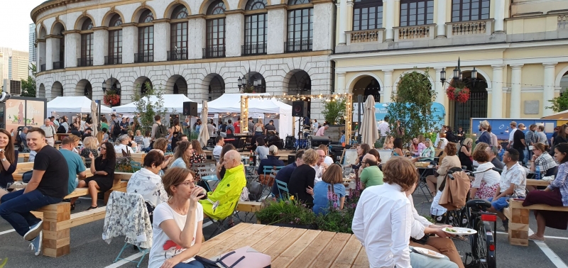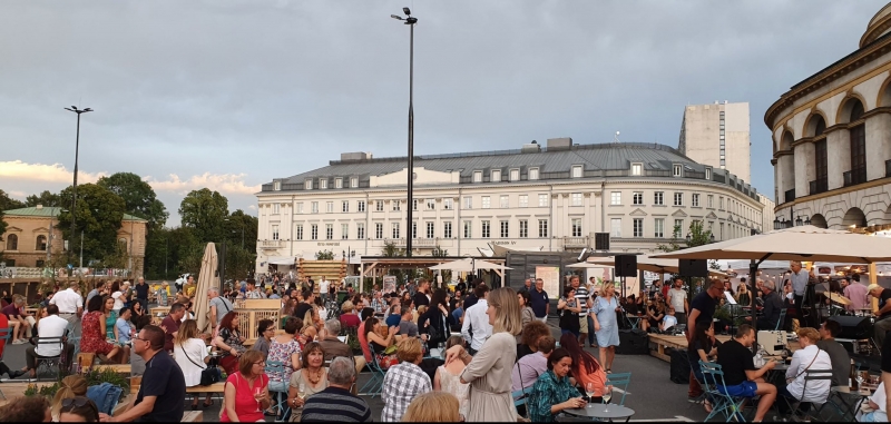 Wszystko to w otoczeniu pięknego placu, muzyki, swobodnej atmosfery dopełnionej muzyką specjalnie przygotowaną na świętowanie.